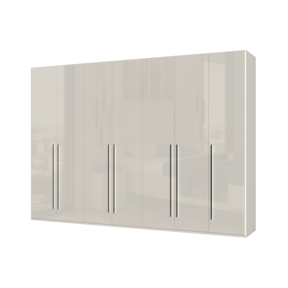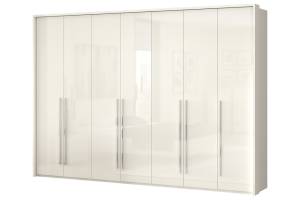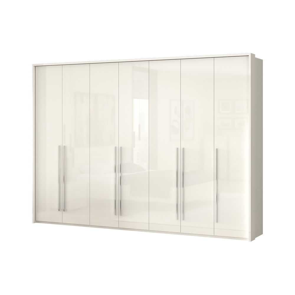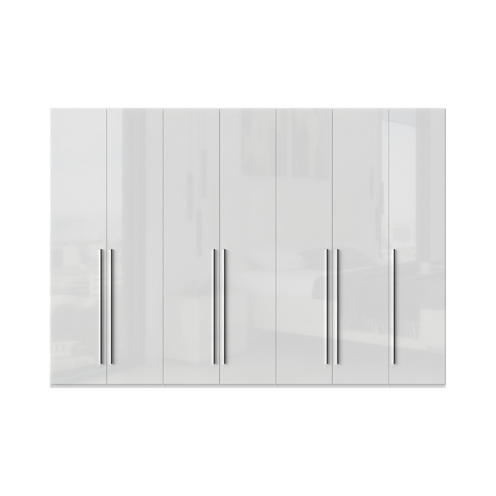 Dulap cu 7 usi cu balamale PIANO WHITE 317x224x56cm alb lucios, maner crom