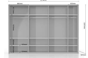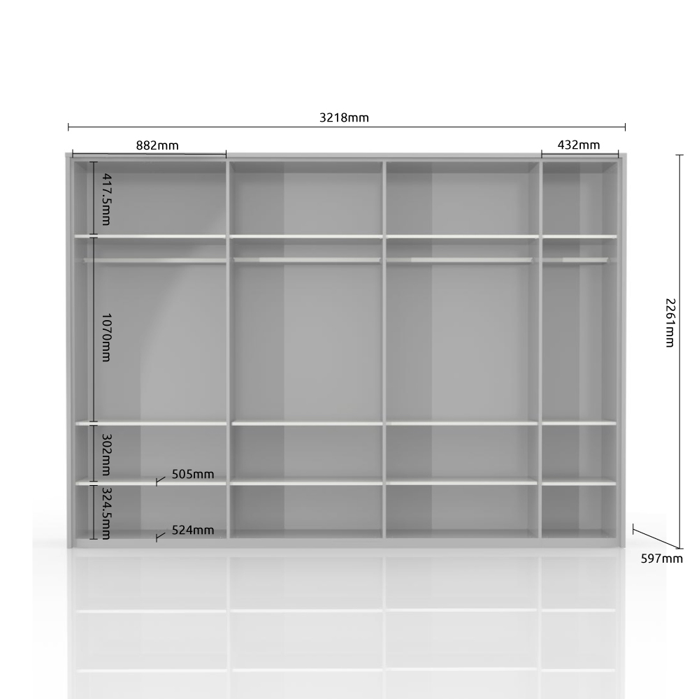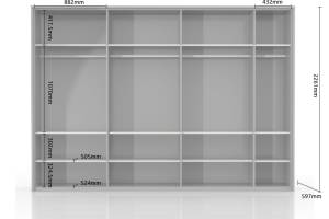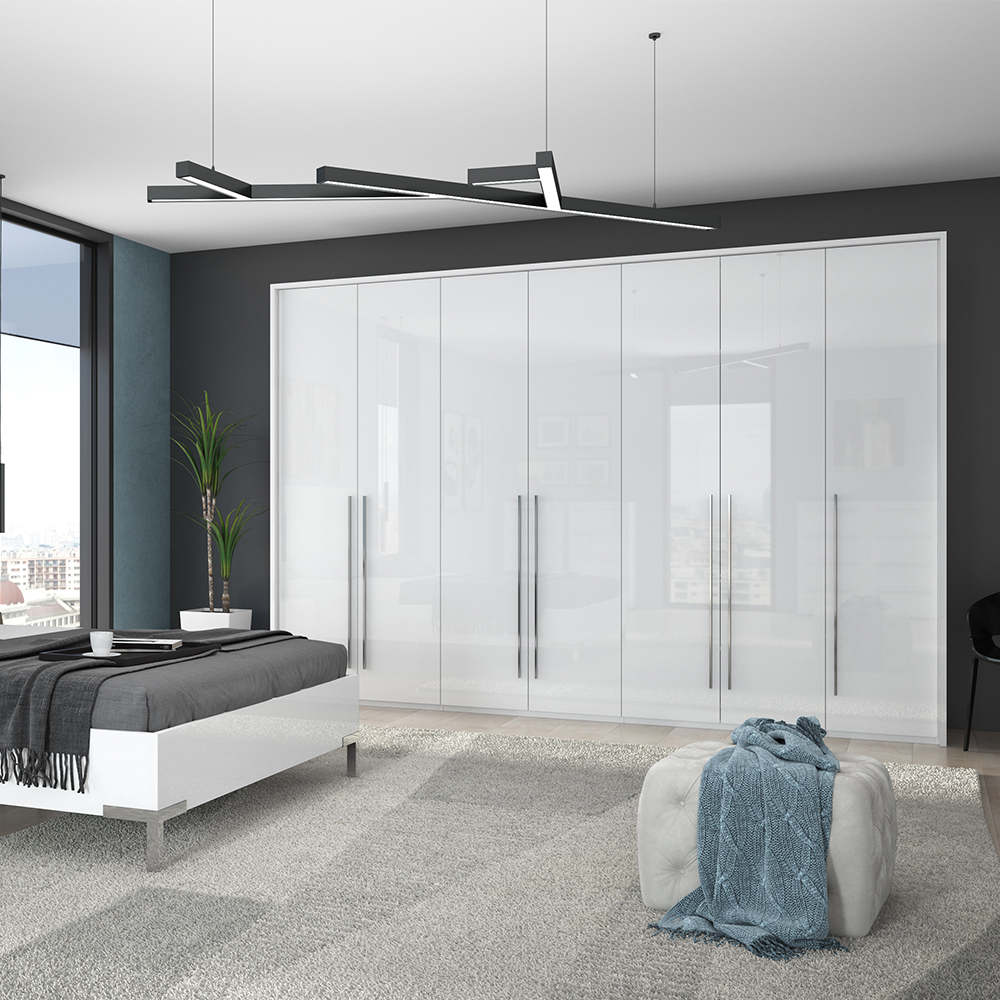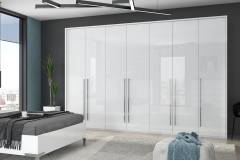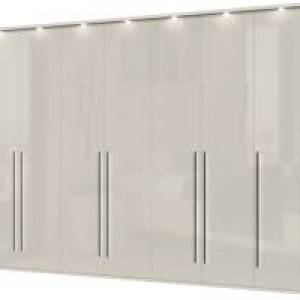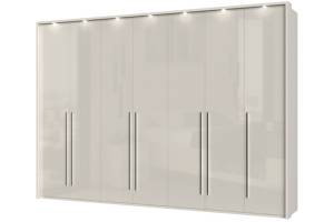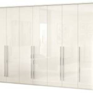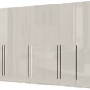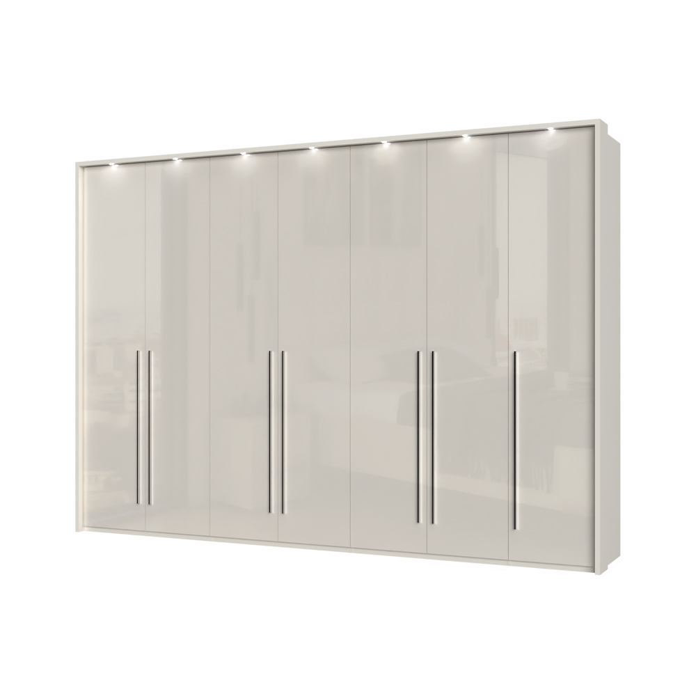 Dulap cu 7 usi cu balamale PIANO WHITE 317x224x56cm alb lucios, maner crom