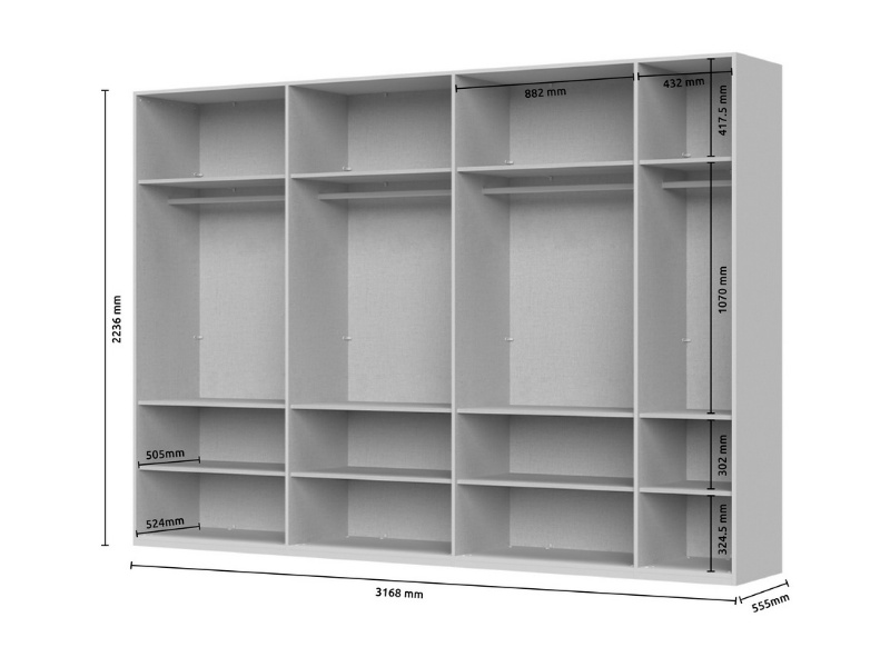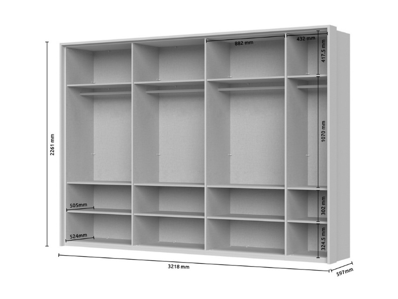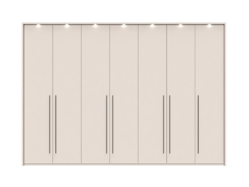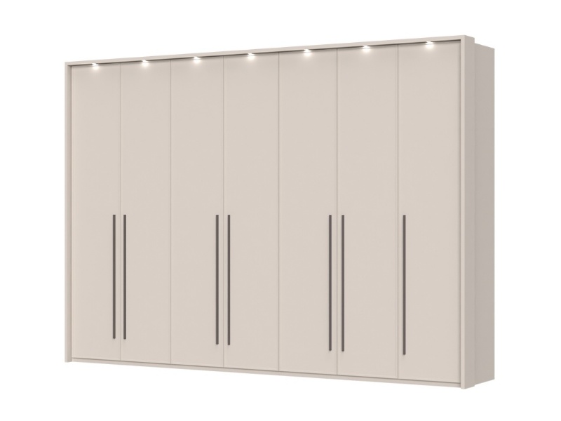 Dulap cu 7 usi cu usi balamale OPERA 317x224x56cm casmir, manere maro