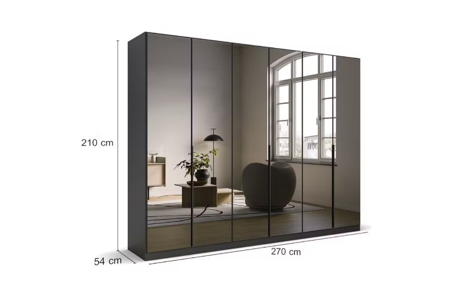 Dulap gri metalic/ oglinda Grey 271x210x54cm SKYLA
