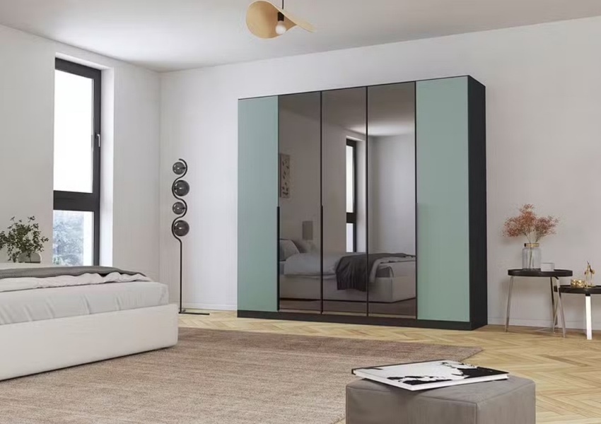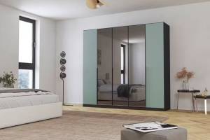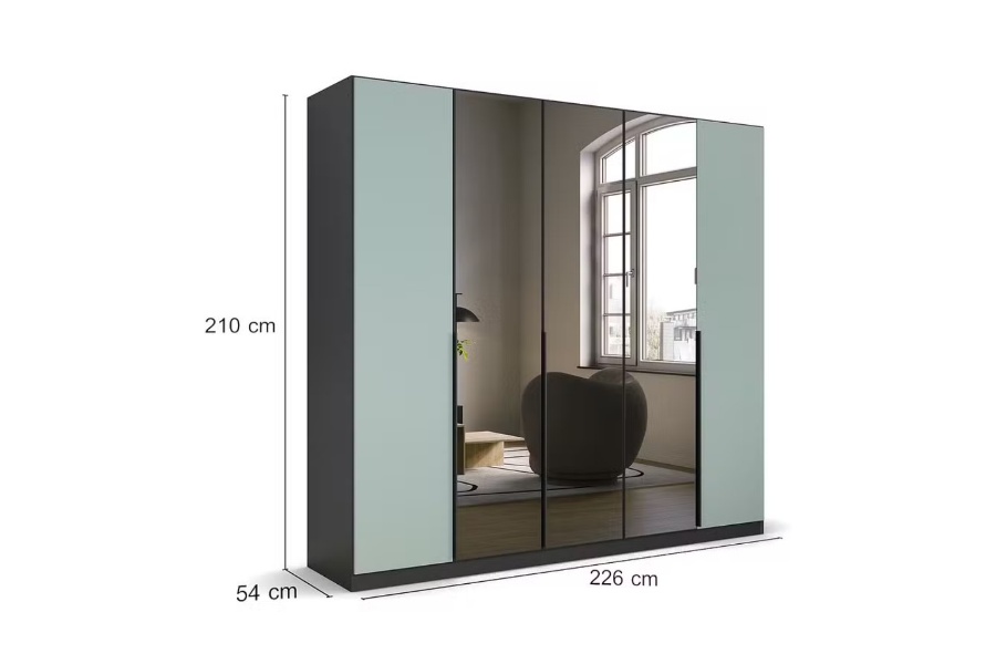 Dulap gri metalic + Sage/ oglinda Grey 226x210x54cm SKYLA