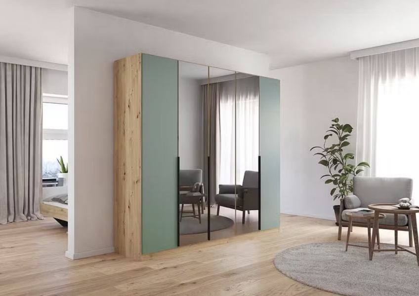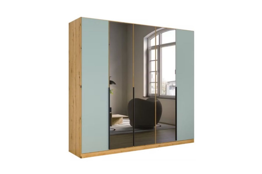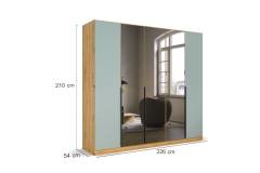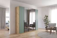 Dulap stejar Artisan + Sage/ oglinda Grey 226x210x54cm SKYLA