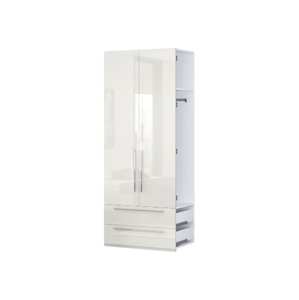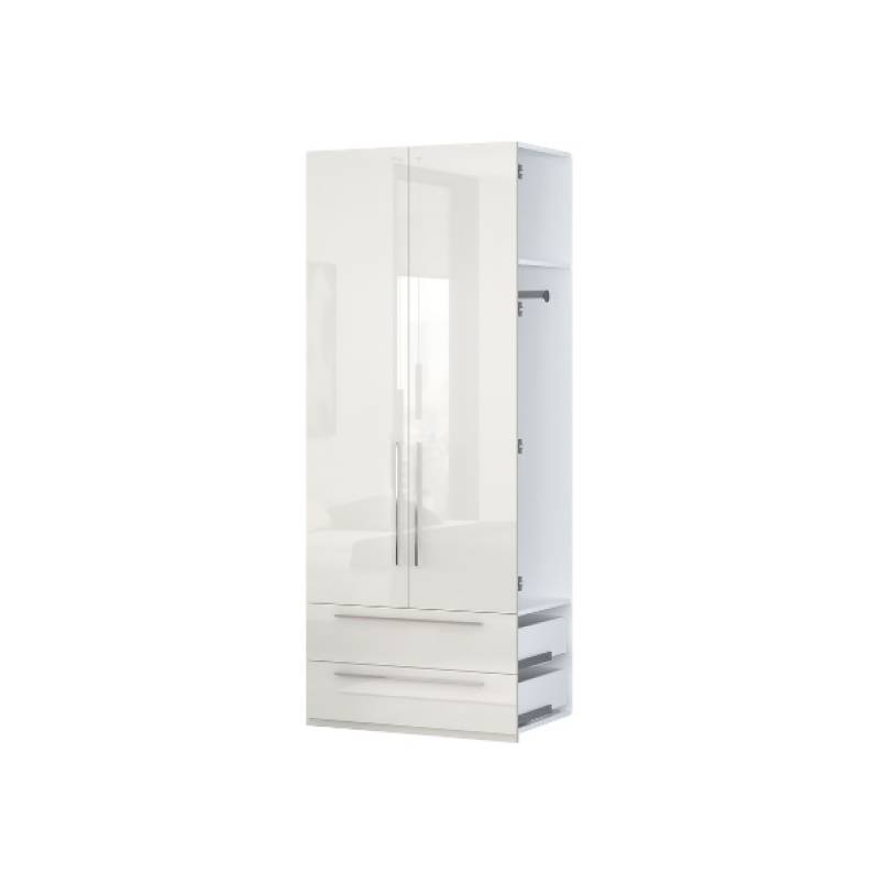 Extensie dulap cu 2 usi cu balamale si 2 sertare PIANO BEIGE 90x224x56cm bej lucios, manere crom