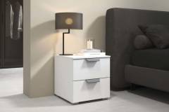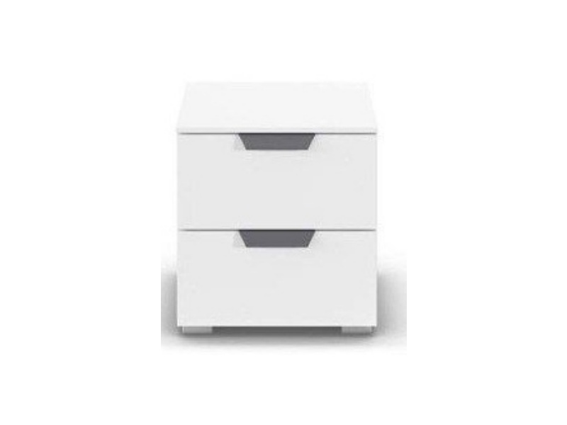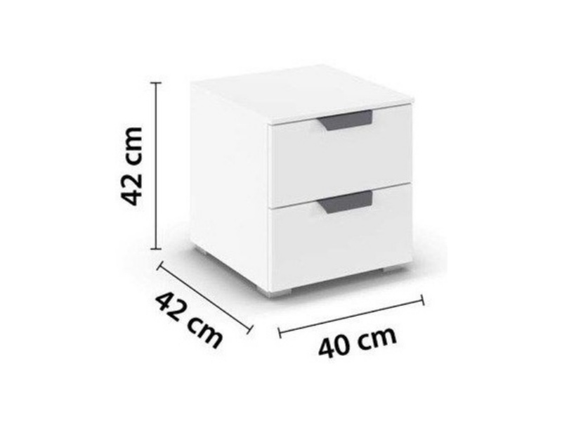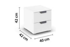 Noptiera cu 2 sertare ADITIO 40x42x42cm alb alpin, maner gri metalic