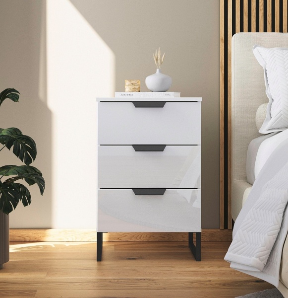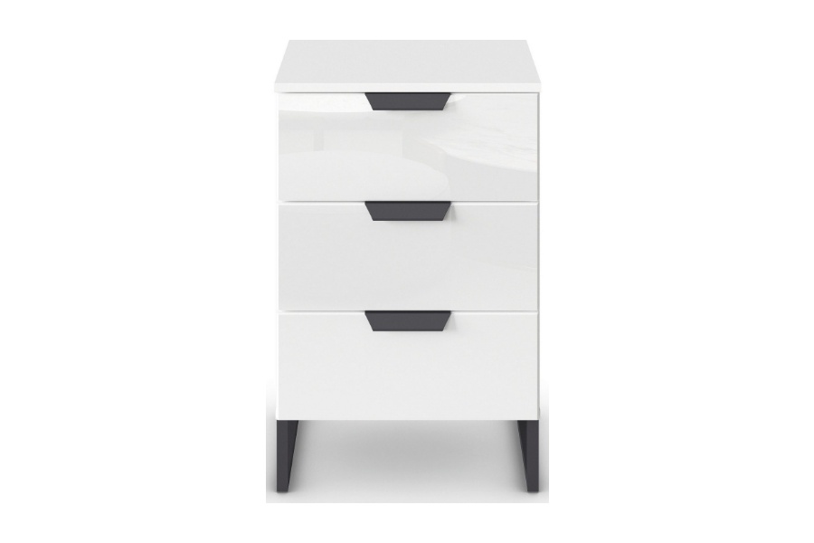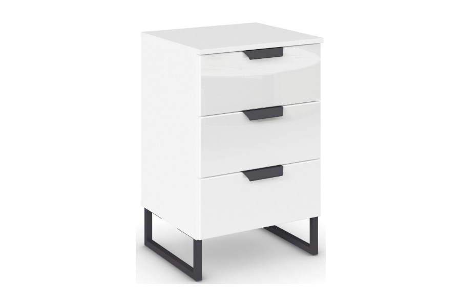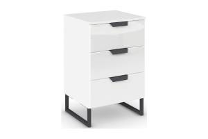 Noptiera cu 3 sertare ADITIO 40x74x42cm alb alpin/ sticla alba