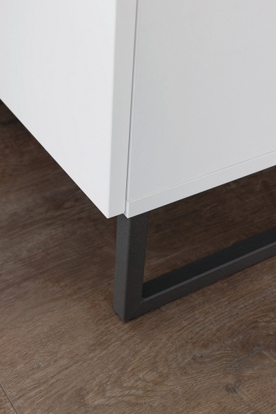 Usile si sertarele sunt placate cu sticla nuanta alba.