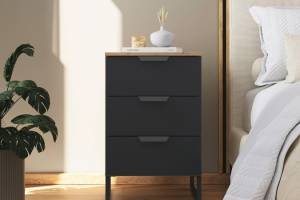 Noptiera cu 3 sertare ADITIO 40x74x42cm stejar artisan/ gri metalic