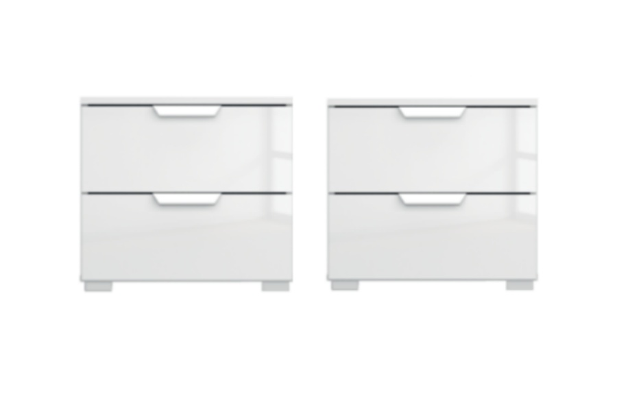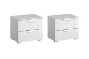 Set 2 noptiere cu 2 sertare ADITIO 40x42x42cm alb alpin/ sticla alba