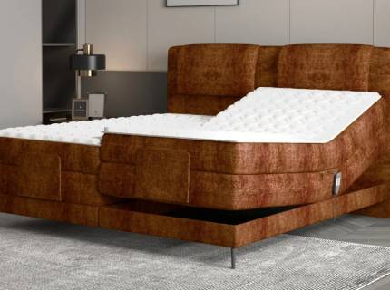 Pat Boxspring cu reglaj electric si topper LENOX (180x200cm) catifea mustar
