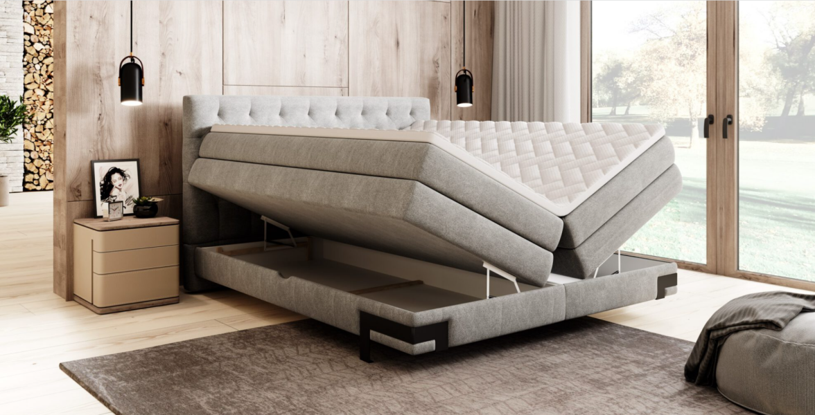 Pat Boxspring cu spatiu pentru depozitare GODIN 140/ 160/ 180cm personalizabil