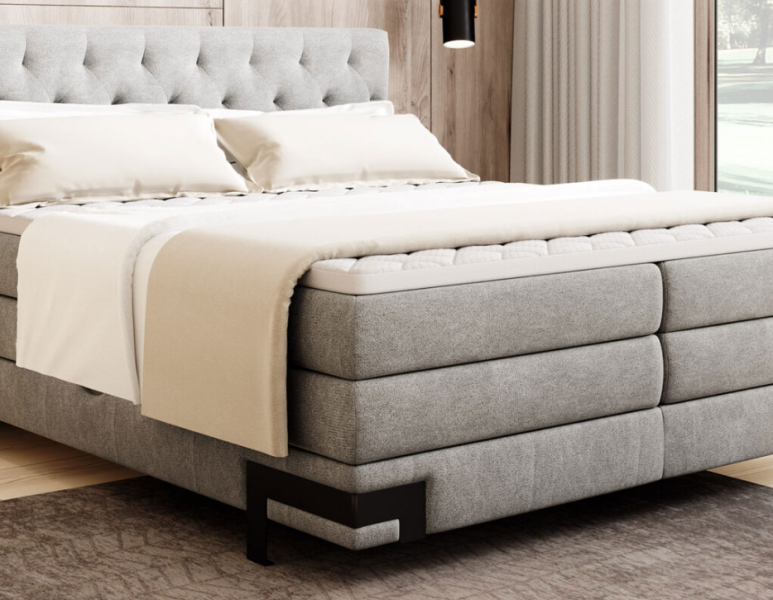 Patul boxspring imbina confortul premium cu un design elegant, fiind perfect pentru un somn odihnitor. Structura robusta si stratificarea inteligenta asigura suport optim, in timp ce estetica moderna completeaza orice dormitor cu stil. Alege luxul si functionalitatea!
