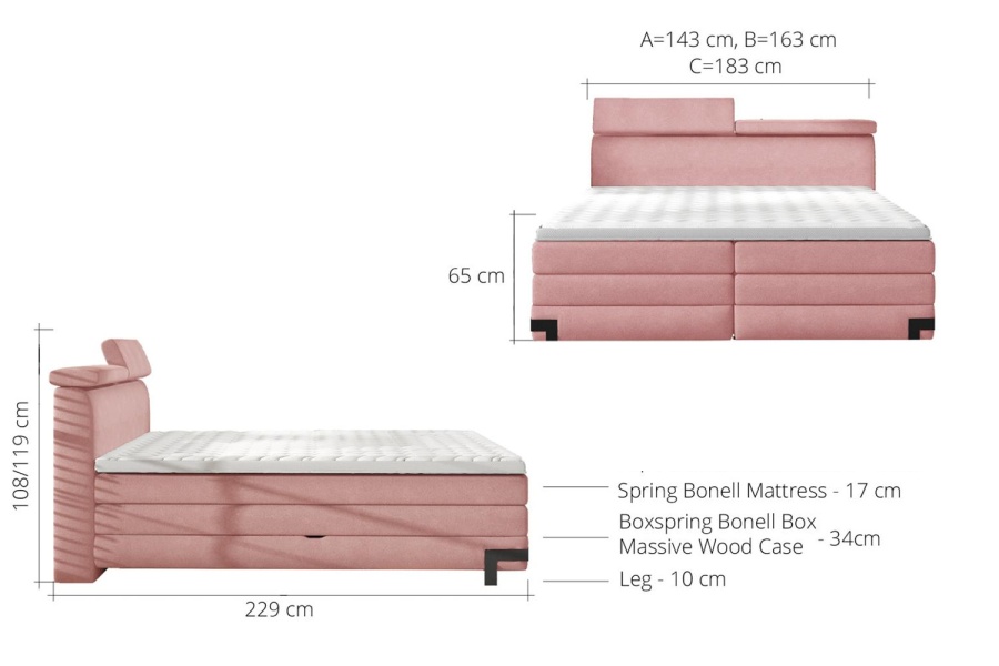 Saltea baza + spatiu pentru depozitare: Saltea cu arcuri de tip BONELL SPRING grosime 34 cm