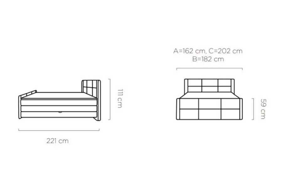 Zona pentru dormit: 140 X 200cm / 160 X 200cm / 180 X 200cm