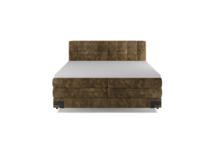 Pat Boxspring cu reglaj electric si topper LENOX (180x200cm) catifea mustar