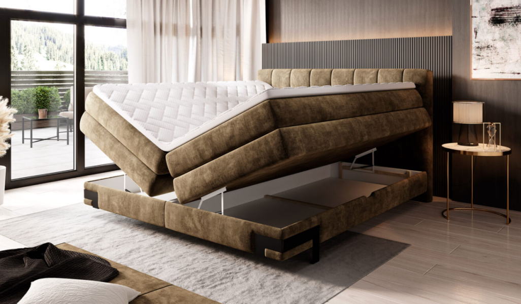 Pat Boxspring cu spatiu pentru depozitare SEMENO 140/ 160/ 180cm personalizabil