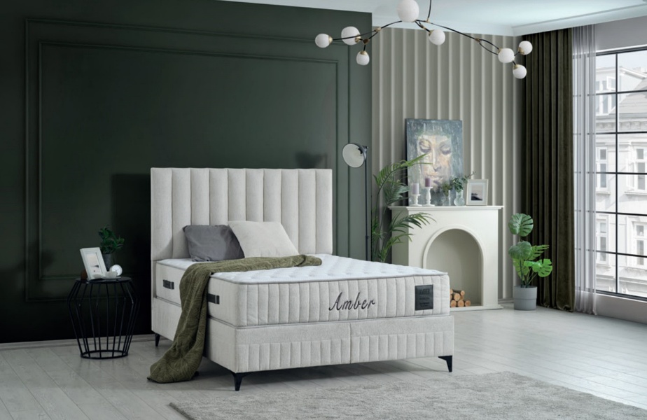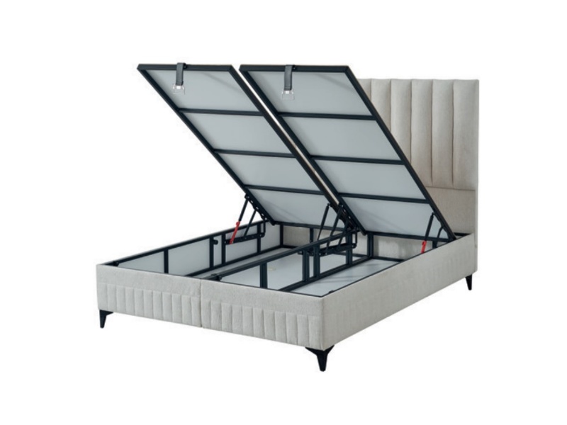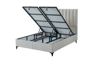 Pat tapitat cu saltea si spatiu pentru depozitare AMBER (160x200cm) cream