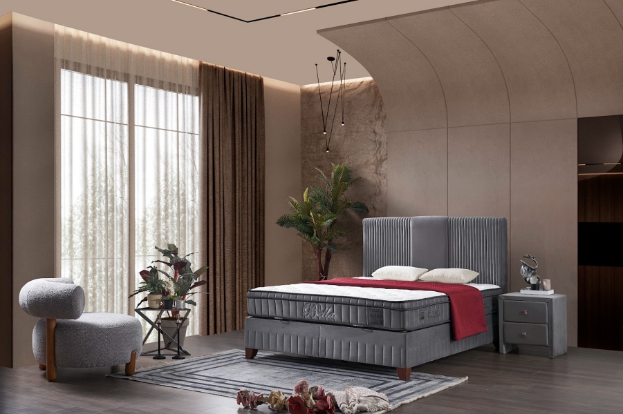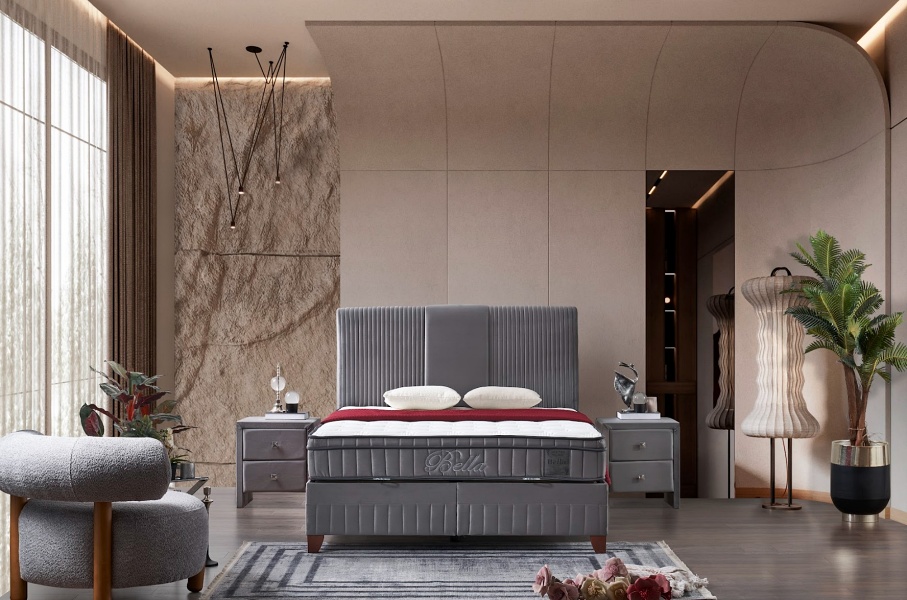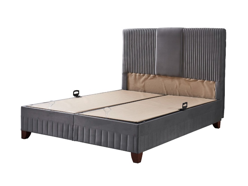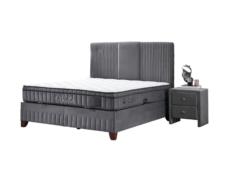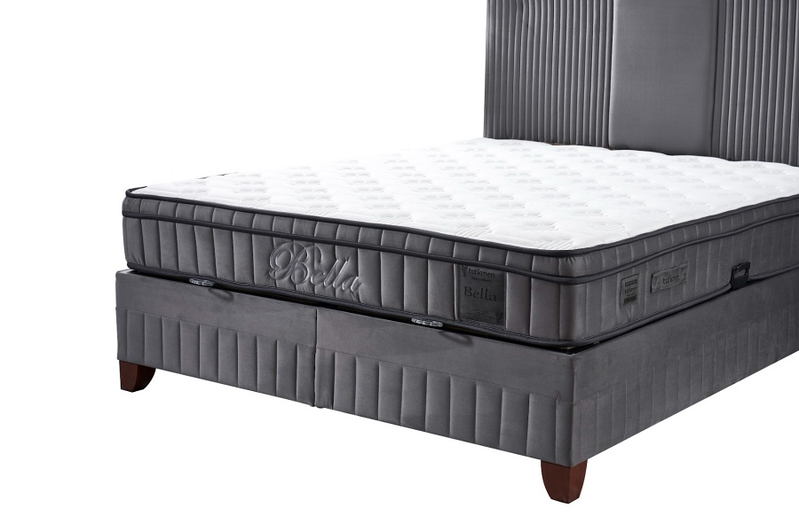 Pat tapitat cu saltea si spatiu pentru depozitare BELLA (160x200cm) grey