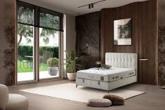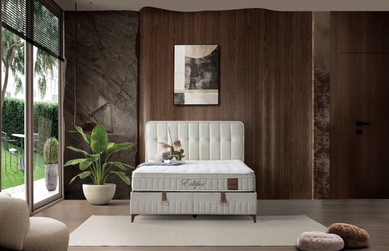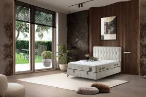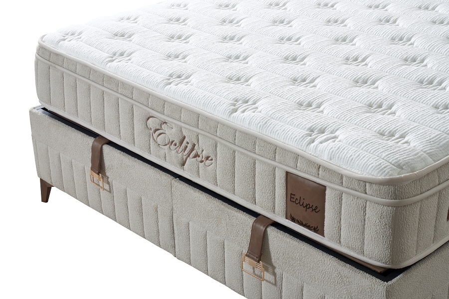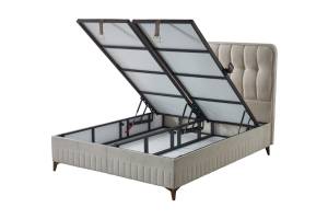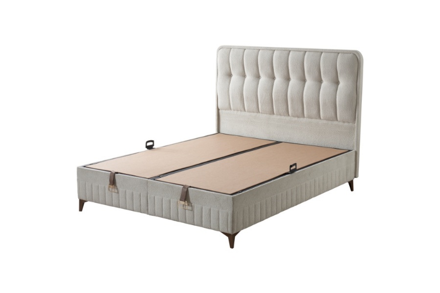 Pat tapitat cu saltea si spatiu pentru depozitare ECLIPSE (140x200cm) cream