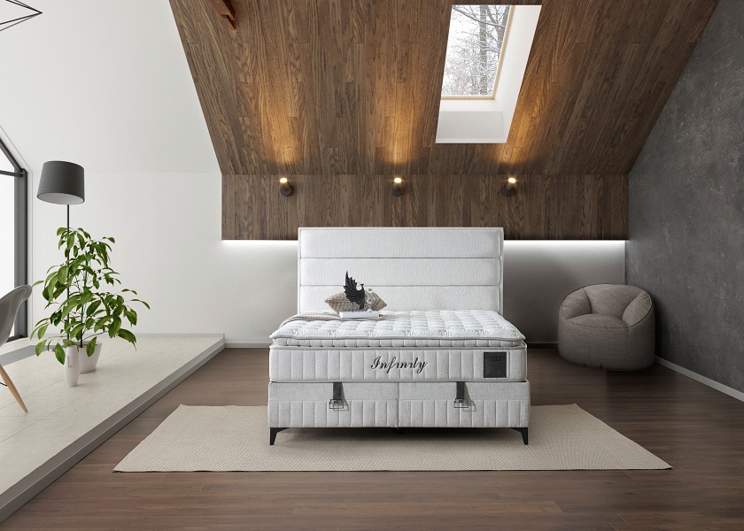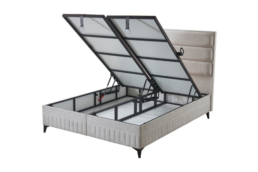 Pat tapitat cu saltea si spatiu pentru depozitare INFINITY (160x200cm) cream