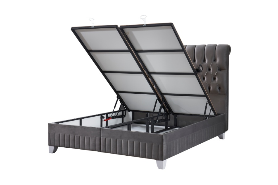 Pat tapitat cu saltea si spatiu pentru depozitare LEXUS (160x200cm) grey
