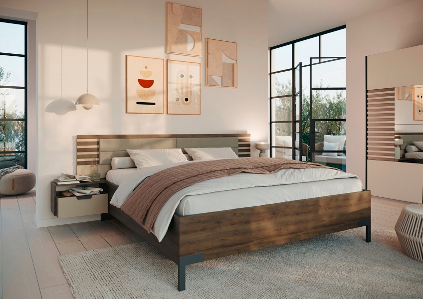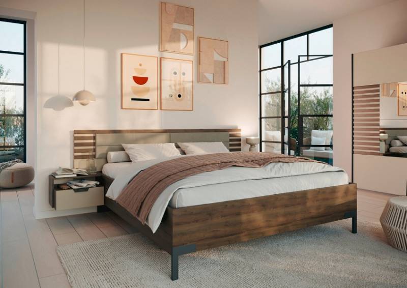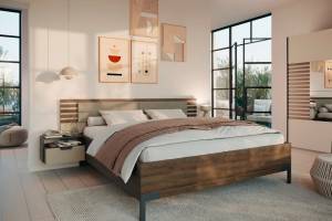 Cadru pat cu 2 noptiere incorporate BAREA(180x200cm) champagne/ stejar Atlantic dark