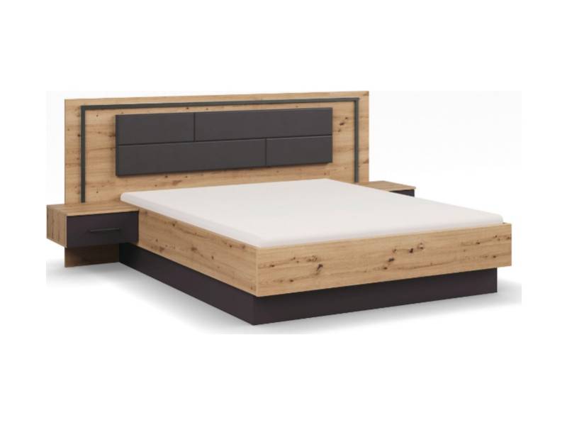Cadru pat cu led si noptiere incorporate BILBAO (160x200cm) stejar artisan/ gri metalic - ecopiele neagra