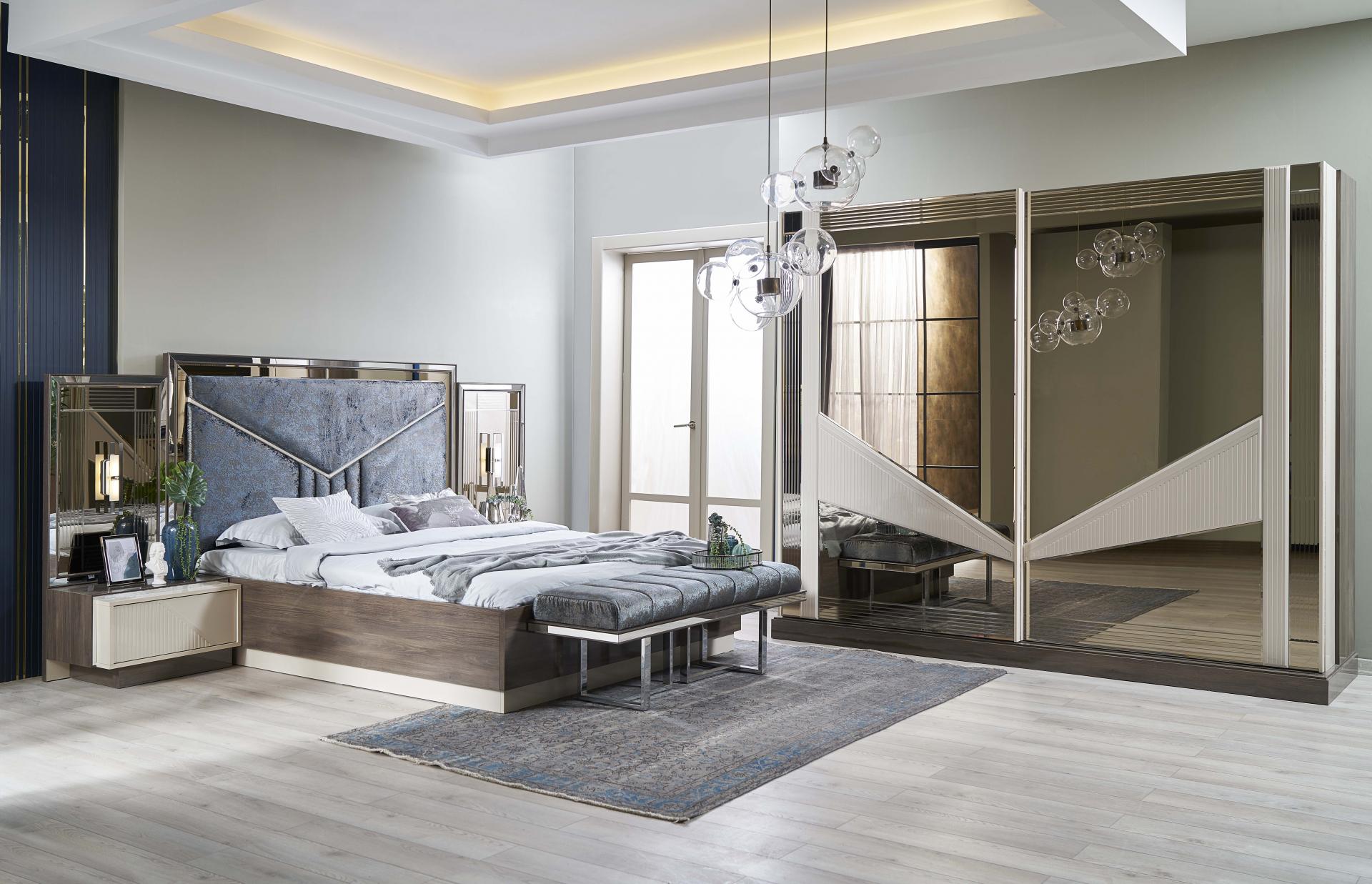Setul contine un pat (160c200cm) + 2 noptiere.