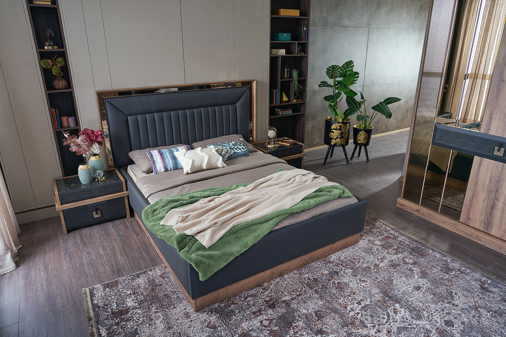Materiale folosite la productie: MDF (partile principale), PAL, oglinda, metal, material textil