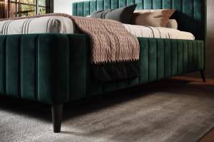 Cadru pat tapitat MAGGIE SR 140/ 160/ 180cm personalizabil, picioare negre / nuanta lemnului