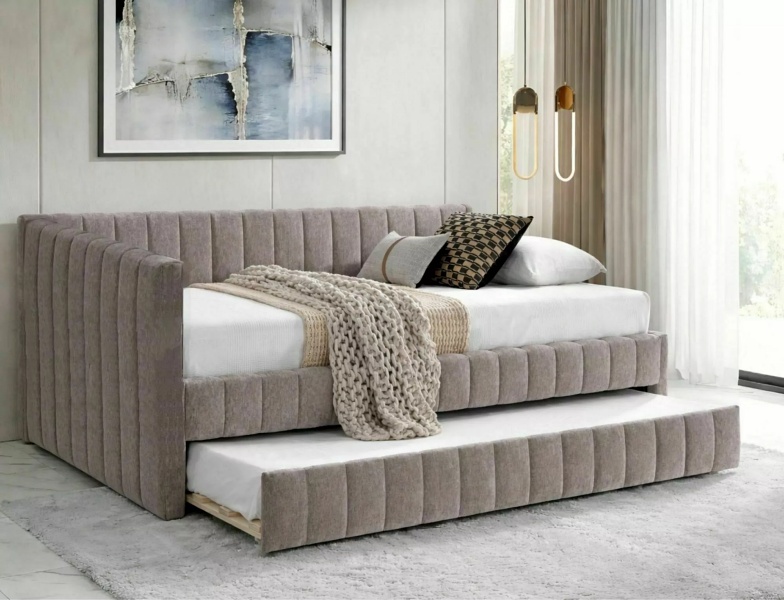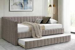 Pat tapitat cu somiera si pat suplimentar ALFIE RAVEN (120x200cm) material textil cappuccino
