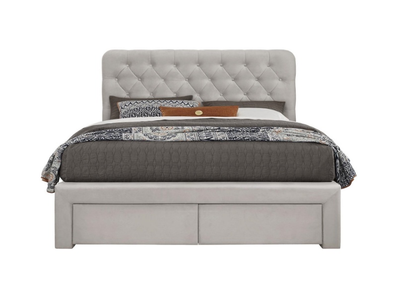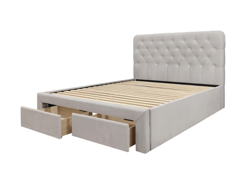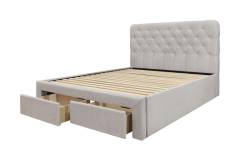 Pat tapitat cu somiera si sertare pentru depozitare MARISOL (160x200cm) catifea beige