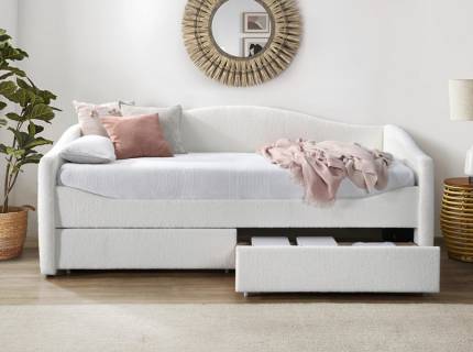 Patul are 2 sertare pentru depozitare.
