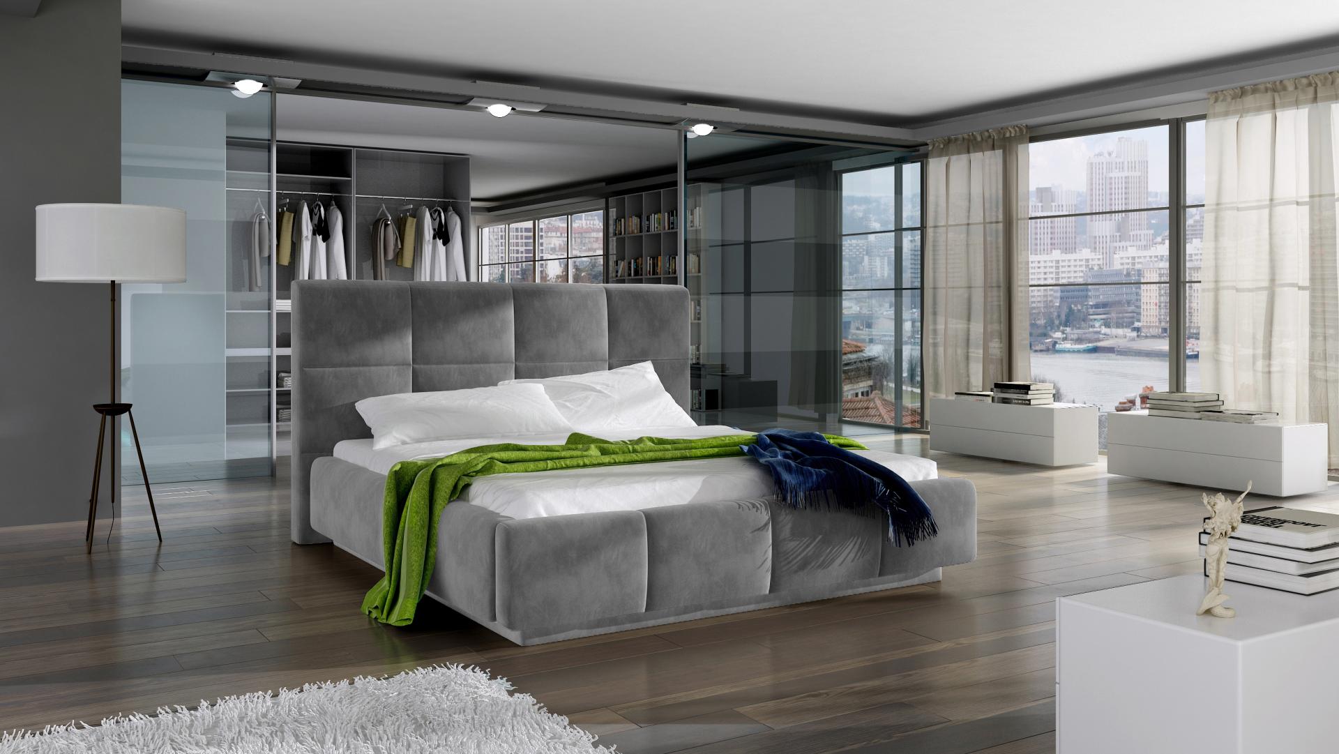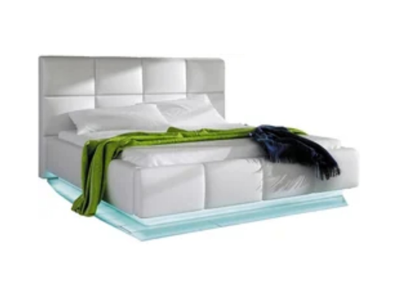 Pat tapitat cu somiera si spatiu pentru depozitare ASTI PROMO (180x200cm) ecopiele alba