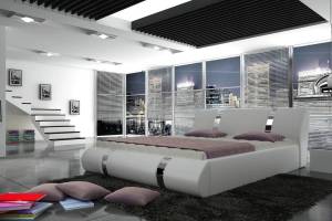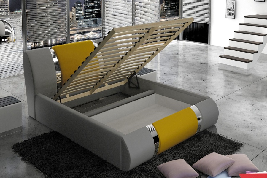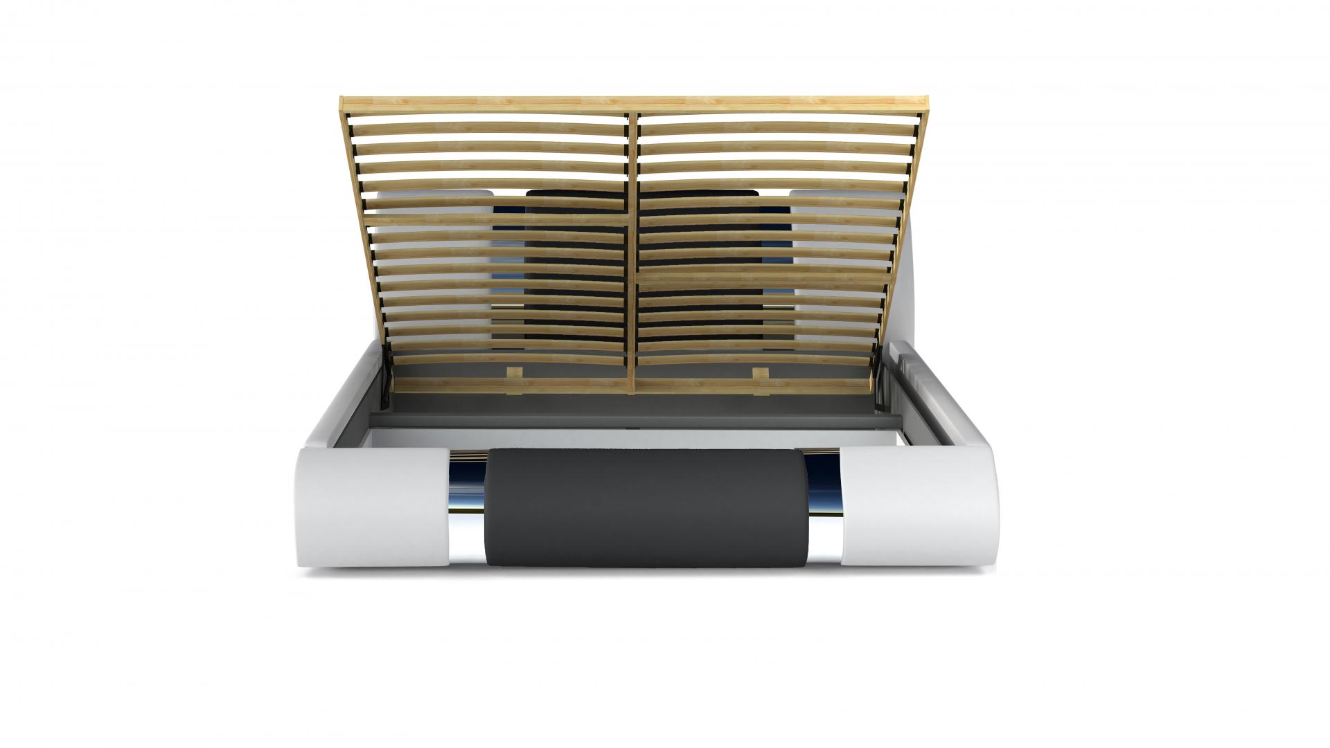 Pat tapitat cu somiera si spatiu pentru depozitare ATLANTIS PROMO (160x200cm) ecopiele alba