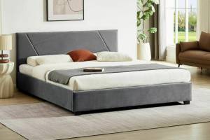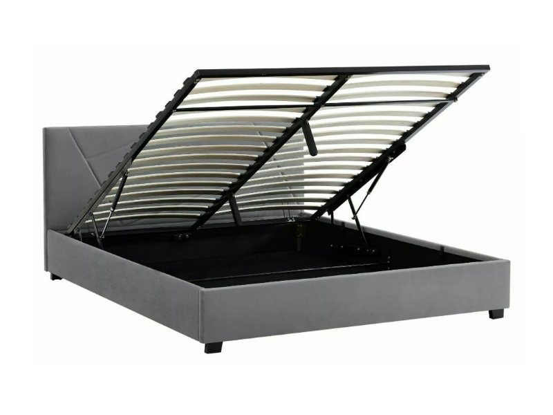 Pat tapitat cu somiera si spatiu pentru depozitare COLUMBIA VELVET 140 / 160cm catifea grey