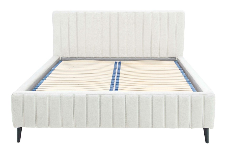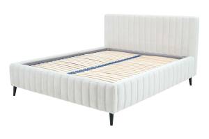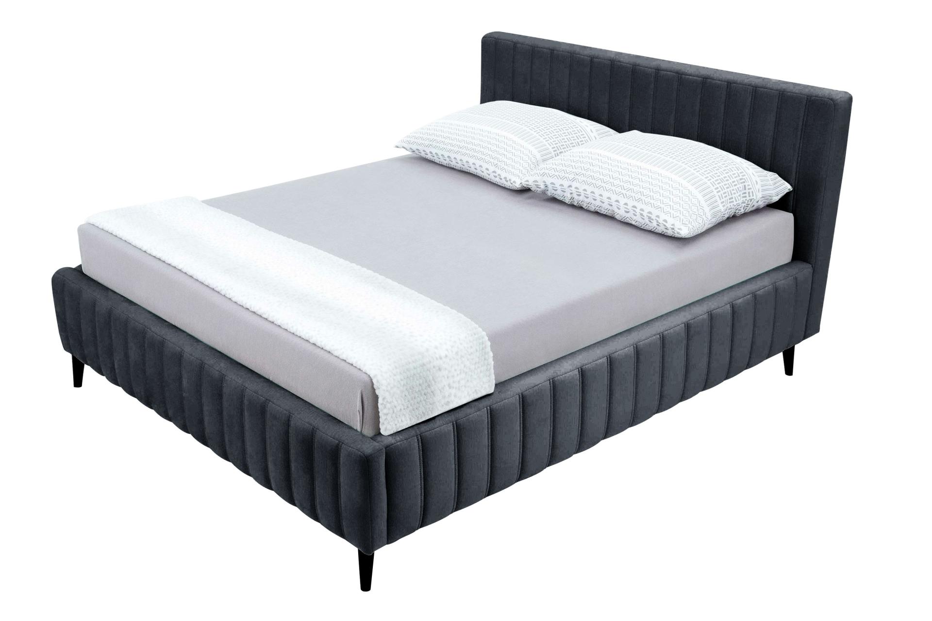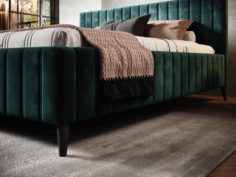 Pat tapitat cu somiera si spatiu pentru depozitare MAGGIE 140/ 160/ 180cm personalizabil, picioare negre/ nuanta lemnului