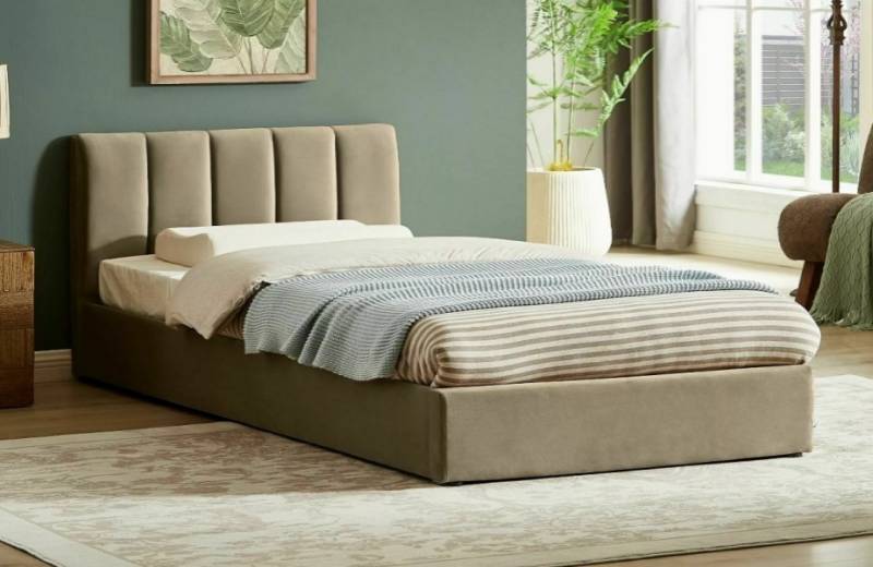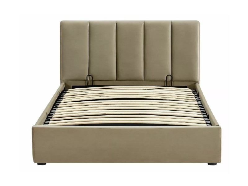 Pat tapitat cu somiera si spatiu pentru depozitare MONTREAL VELVET (120x200cm) catifea beige
