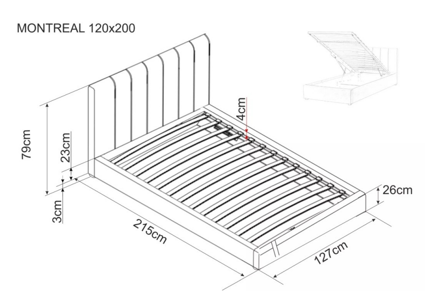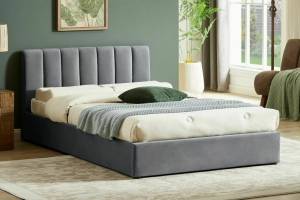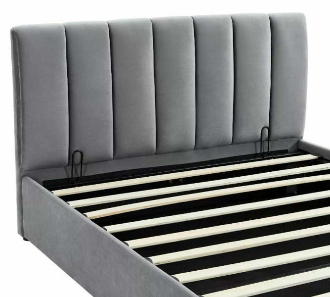 Pat tapitat cu somiera si spatiu pentru depozitare MONTREAL VELVET (120x200cm) catifea grey