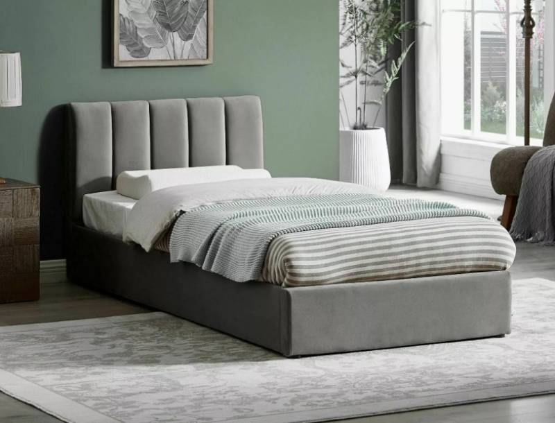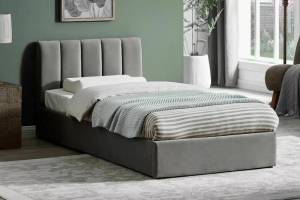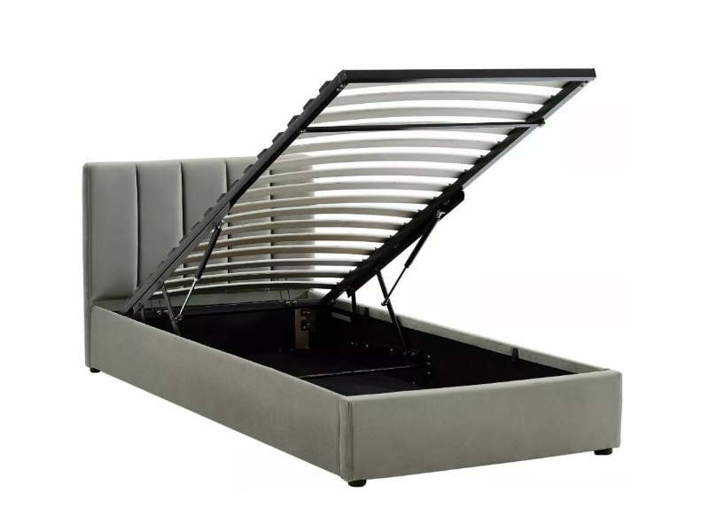 Pat tapitat cu somiera si spatiu pentru depozitare MONTREAL VELVET (90x200cm) catifea grey