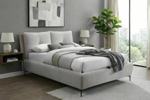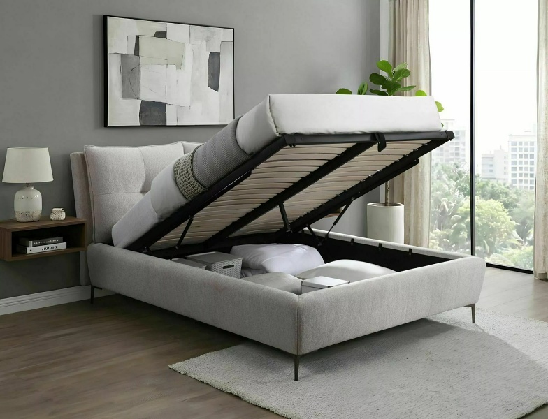 Pat tapitat cu somiera si spatiu pentru depozitare PASADENA RAVEN 160x200cm material textil beige