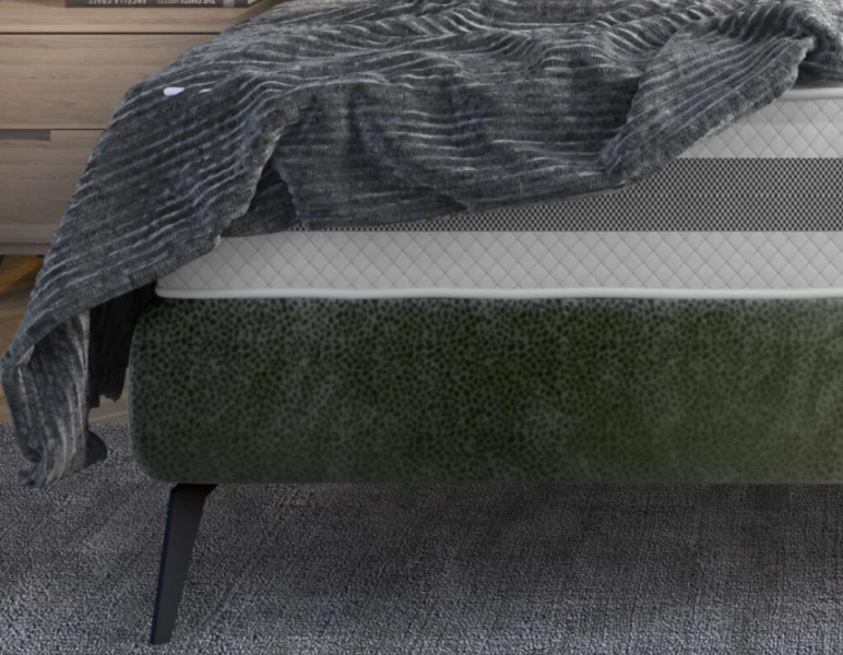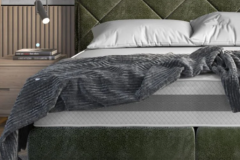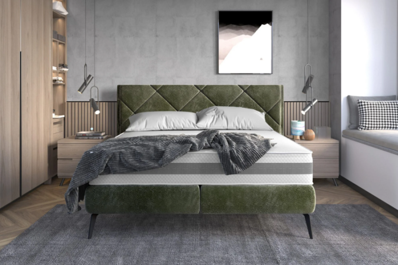 Pat tapitat cu somiera tip placa SCARLET 160 / 180cm material textil, picioare negre