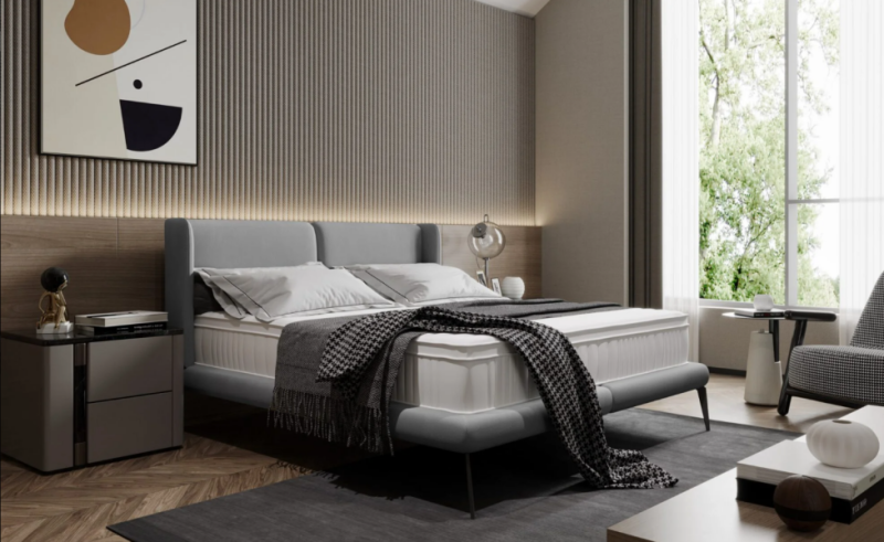 Pat tapitat cu somiera tip placa TESSINA 140/ 160/ 180cm personalizabil