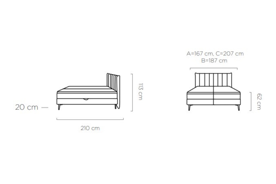Zona pentru dormit: 140 X 200 cm / 160 X 200 cm / 180 X 200 cm