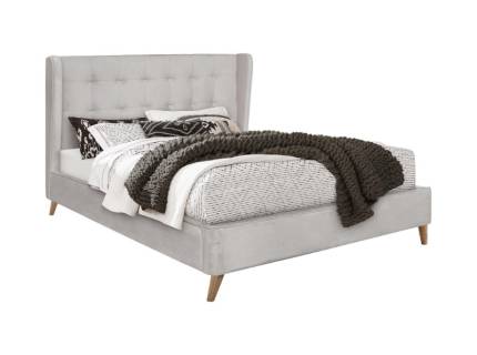 Pat tapitat cu somiera ESTELLA (160x200cm) catifea beige, picioare nuanta lemnului