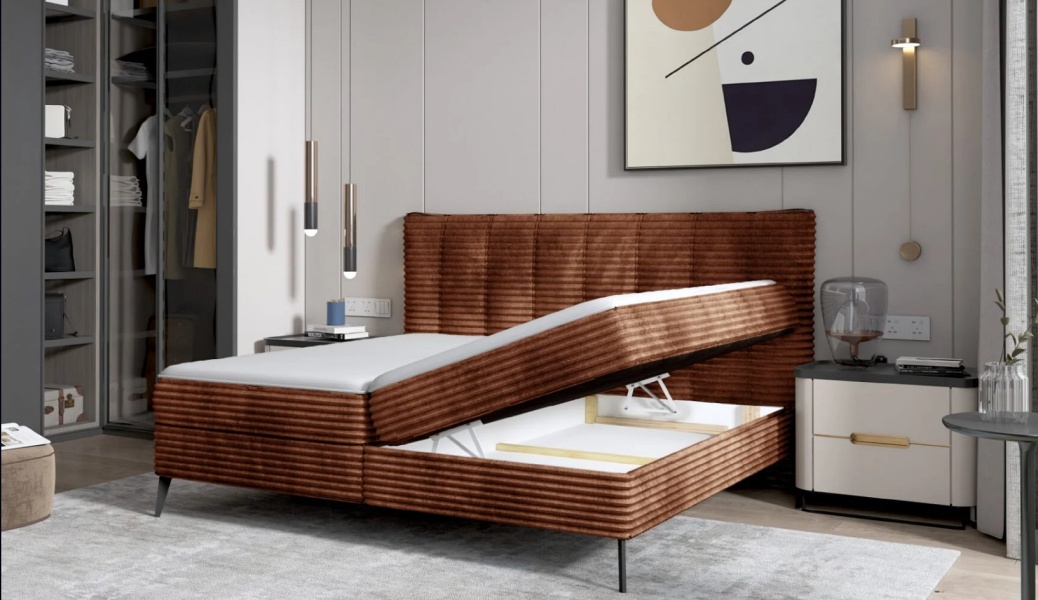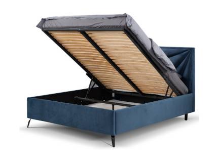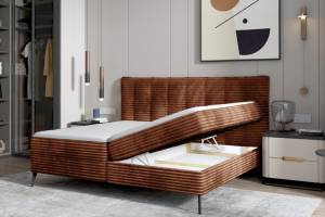 Pat tapitat cu spatiu pentru depozitare, saltea si topper incorporat MARTINA 140/ 160/ 180cm personalizabil, picioare negre