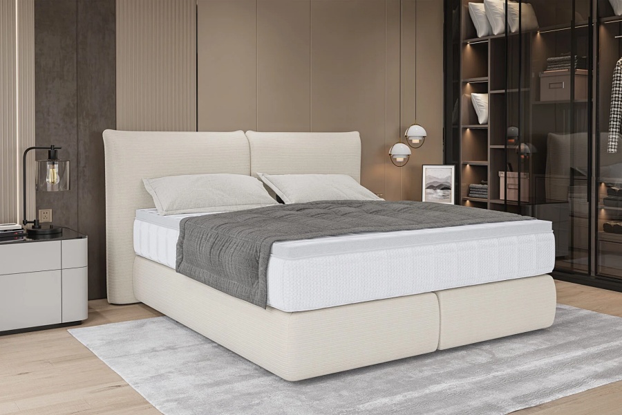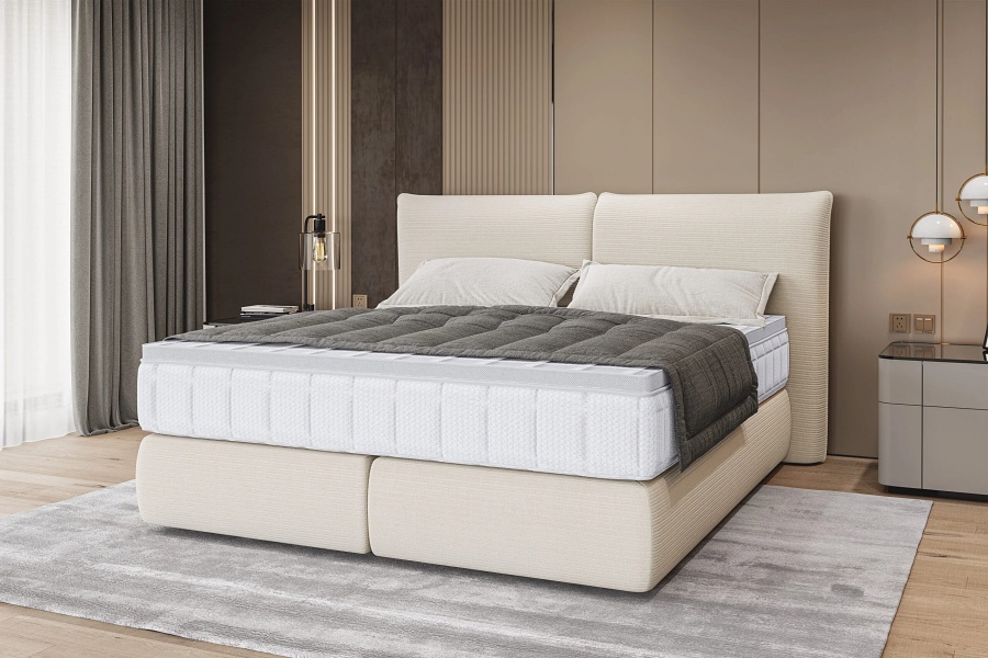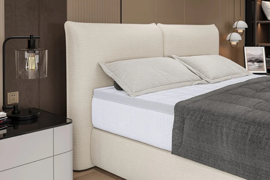 Pat tapitat LOU cu somiera si saltea UNIQUE BAMBOO inclusa 140/ 160/ 180cm minimalist, personalizabil