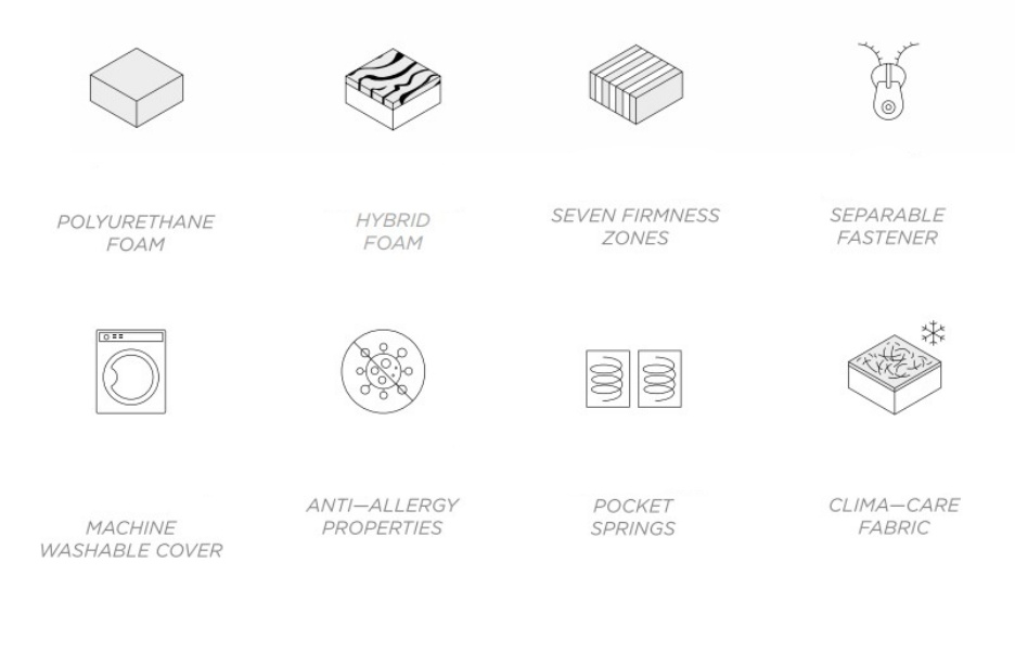 - este acoperita cu o tesatura (poliester tricotat si lana), placuta la atingere, care permite aerului sa circule in interiorul ei, prevenind astfel dezvoltarea mucegaiului si a ciupercilor.