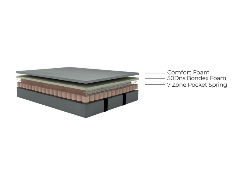Saltea: Saltea cu arcuri tip 7 ZONE POCKET SPRING + 50DNS BONDEX FOAM (spuma) + COMFORT FOAM (spuma)