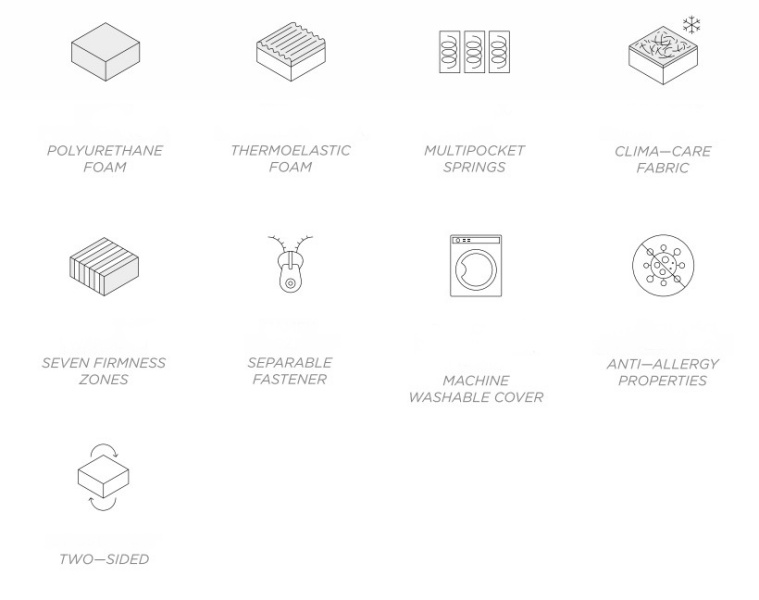 - este acoperita cu o tesatura (poliester), placuta la atingere, care permite aerului sa circule in interiorul ei, prevenind astfel dezvoltarea mucegaiului si a ciupercilor.