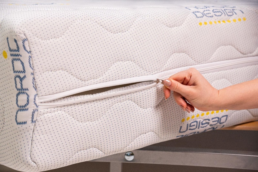 - Husă detașabilă și tratată antialergic – Fabricată din 80% bumbac și 20% poliester, husa este moale la atingere, respirabilă și ușor de întreținut.